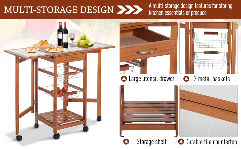Amazon Com Heavens Tvcz Trolley Cart Island Folding Drop Leaf